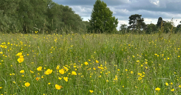小道を歩くと、横の草原には風に揺れるバターカップ。別の小道の横には、大地いっぱいに広がる麦畑。先を行くと、枝を広げる大木…