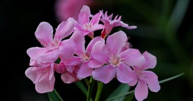 今キョウチクトウも咲いていますね。花は桃色で葉は夾(はさみ)や笹(小さな竹)に似ているところから夾竹桃(キョウチクトウ)と…